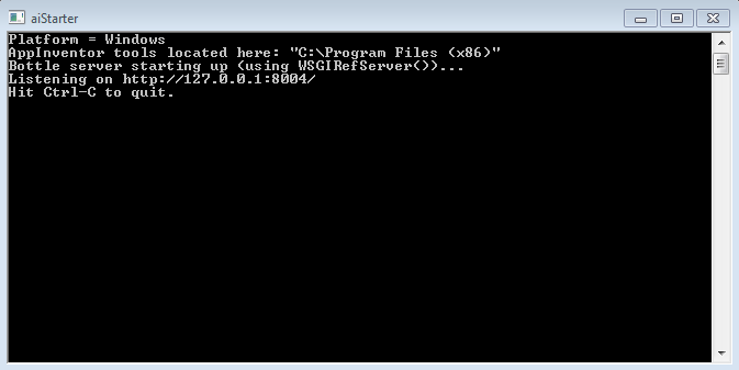 The emulator requires the use of a program named aiStarter. This program is the helper that permits the browser to communicate with the emulator. The aiStarter program was installed when you installed the App Inventor Setup package. There will be shortcuts to aiStarter from your Desktop, Start menu, All Programs and from Stratup Folder (Windows only). Linux: Every time you want to use the emulator with App Inventor, you will need to manually launch the aiStarter on your computer. Mac and Windows users do not have to do this! The aiStarter will start automatically on a Mac, Windows when you login to your account and run invisibly in the background. For Help with aiStarter, see Connection Help.