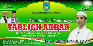 - 20.00 – selesai di Lapangan Merdeka Langsa, Tabligh Akbar dengan tema Akhlak Rasulullah SAW sebagai Spirit Menuju Revolusi Mental.
